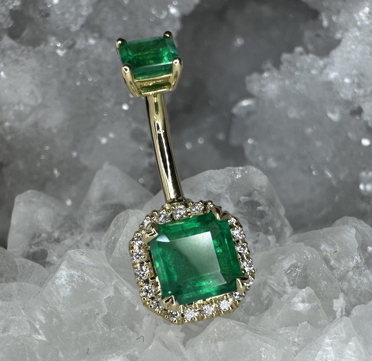 PIERCING NOMBRIL SERTI D’EMERAUDES ET DIAMANTS (VVS D-F) EN OR 18K